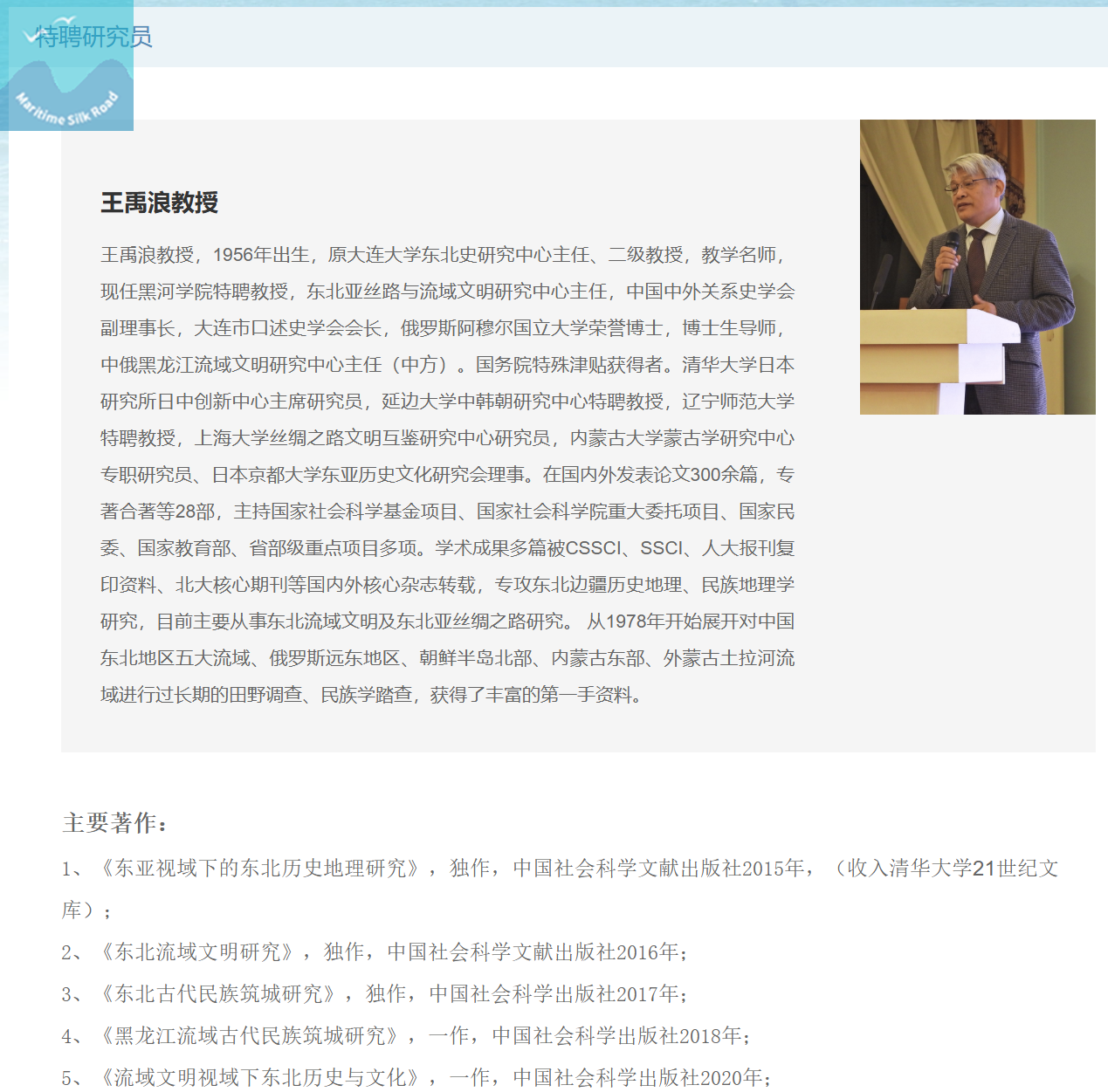 正是依托上述科研项目,背靠复旦大学,面向东北亚洲,才组建起了多学科、跨专业、高水平的“一带一路”学术共同体。目前团队在研人数55人,包括由复旦教授组成的核心专家8人,由在读和毕业研究生组成的核心成员32人,由海内外著名教授组成的特聘研究员15人,其中就有咱们大连基地和黑河学院基地德高望重的王禹浪教授。